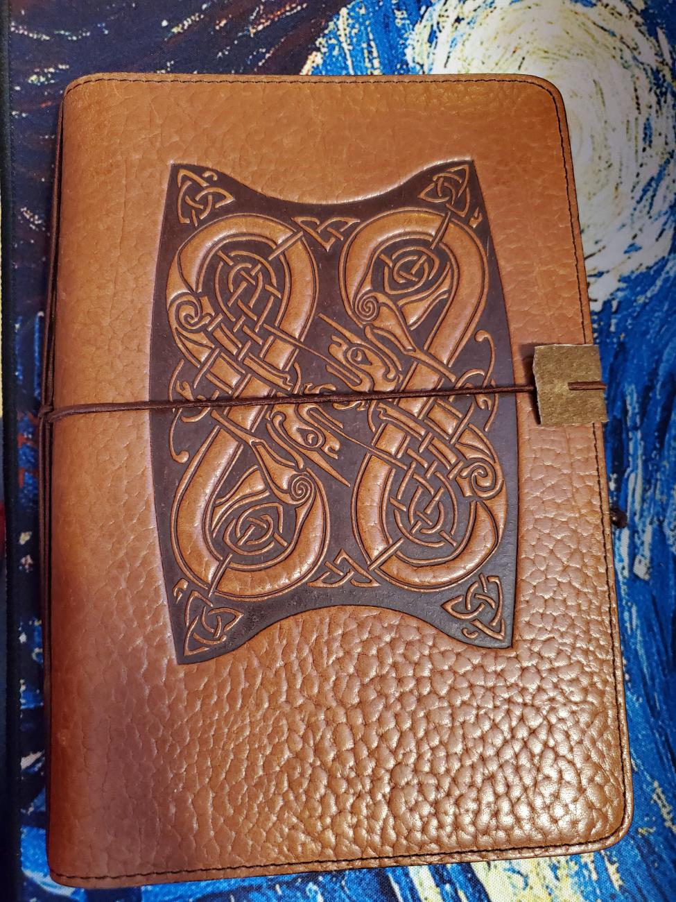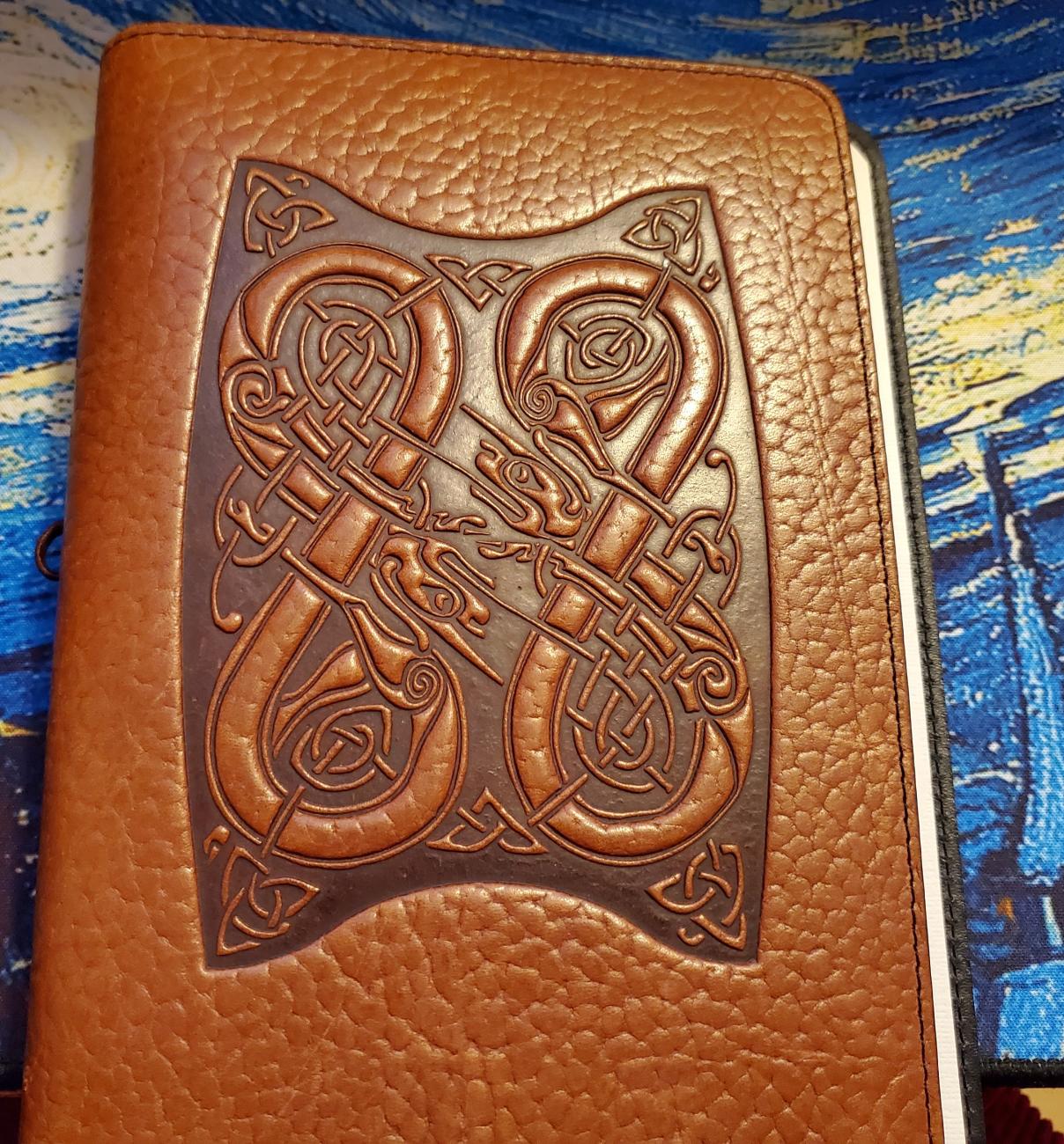 I've had this heavy tooled leather refillable address book from Oberon Design↑ for many years. The address book insert is long gone, and I've attempted to use it as a refillable notebook over the years, without much success, because the original insert was a non-standard size (A5, but a bit more narrow).